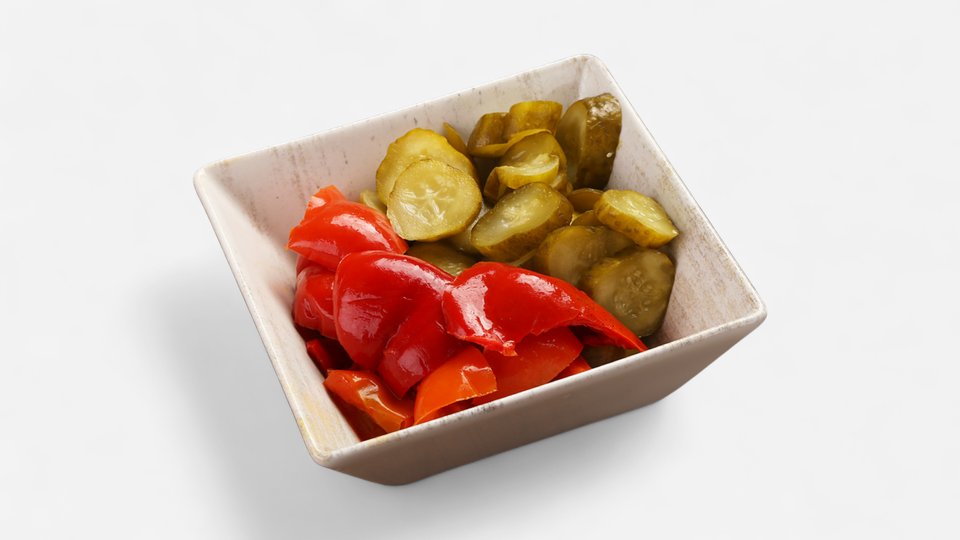 Ardei gras, castraveți murați,sare,zahăr,oțet, condimente -150g