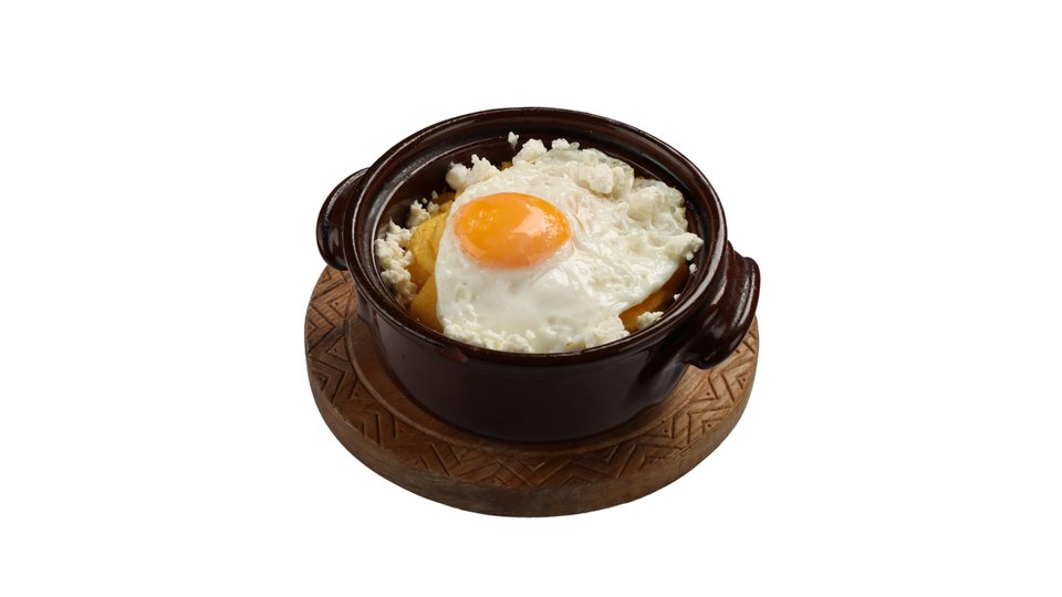Mămăliguță, telemea de oi, bacon, brânză de burduf, ouă, ulei 500 g