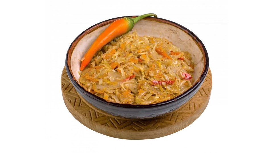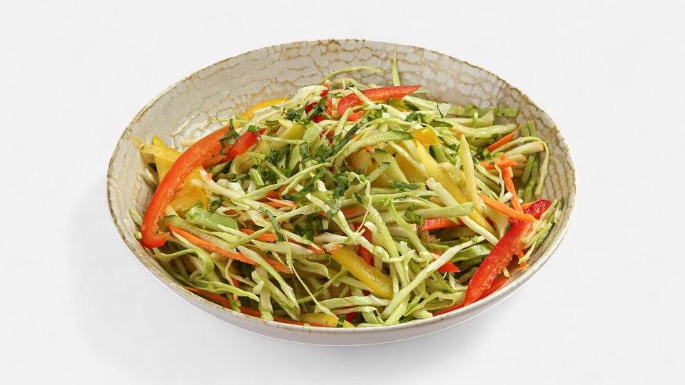 Varză, morcovi, ardei gras, ceapă, ulei, sare, suc lămâie 380 g