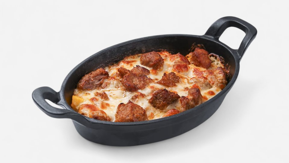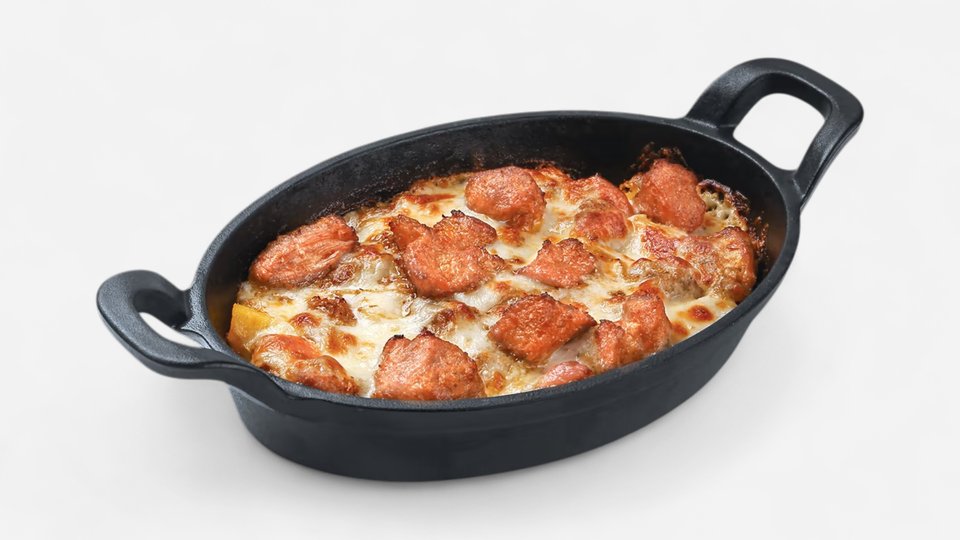 Carne de pui și porc, cremă de gătit , făină , ouă , cașcaval , ceapă , lapte , condimente 370 g