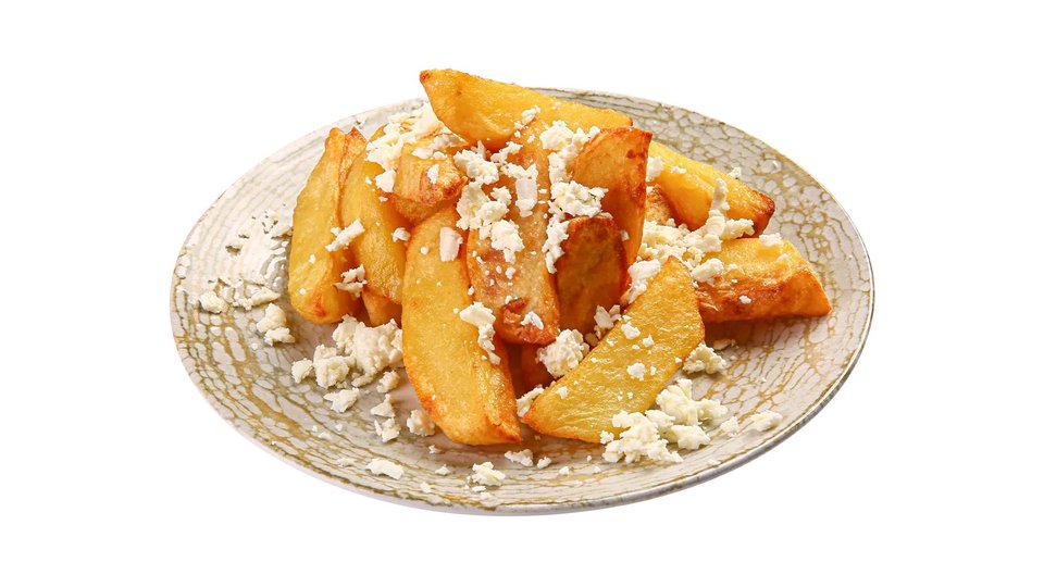 Cartofi, sare, ulei, telemea de oi. În zilele de post, nu se pune brânză la cerere. 200/30 g