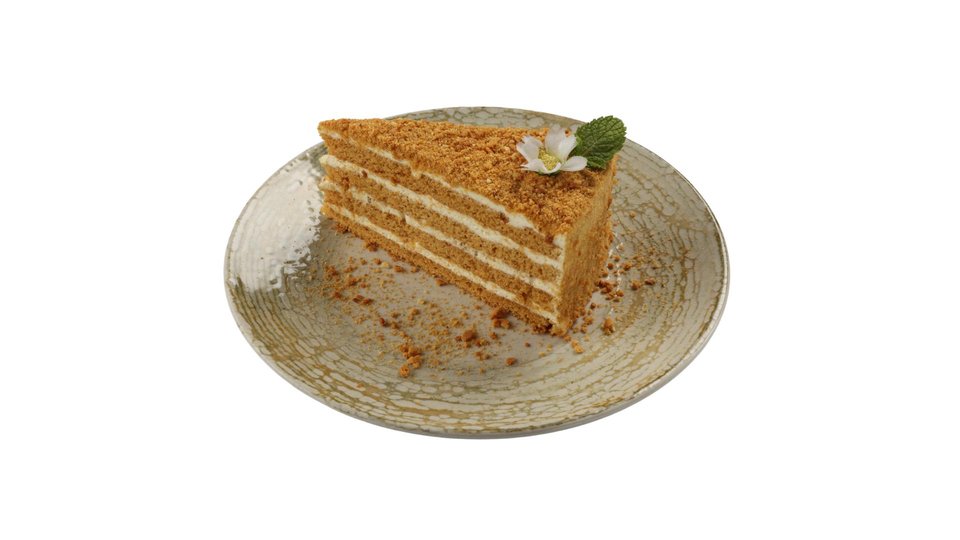 Smântână 20% , miere, zahăr, ouă, unt, făină, smântână pentru frișcă 35% , zahăr pudră, bicarbonat de sodiu, sare, esență de vanilie, nucă. 160 gr