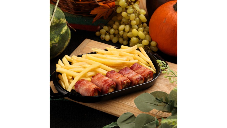 Piept de pui, bacon, condimente, cartofi pai, sare. 200/150/50 g