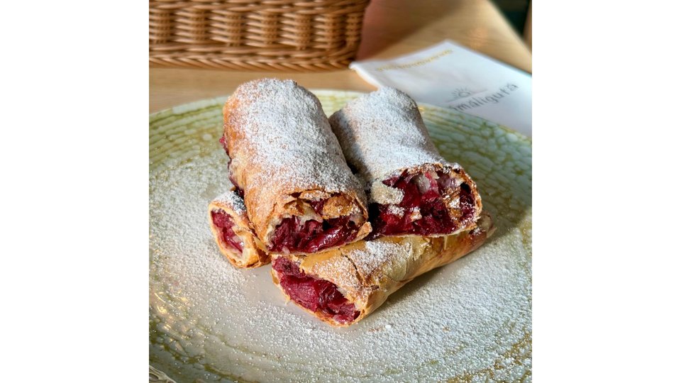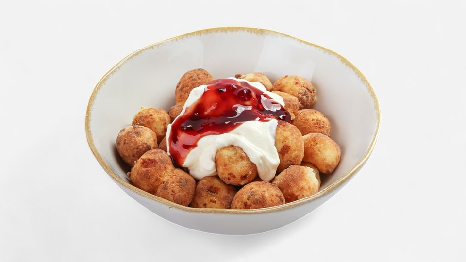 Brânză de vaci, făină, ouă, smântână, dulceață de coacăze, zahăr vanilat 180/50/30 g