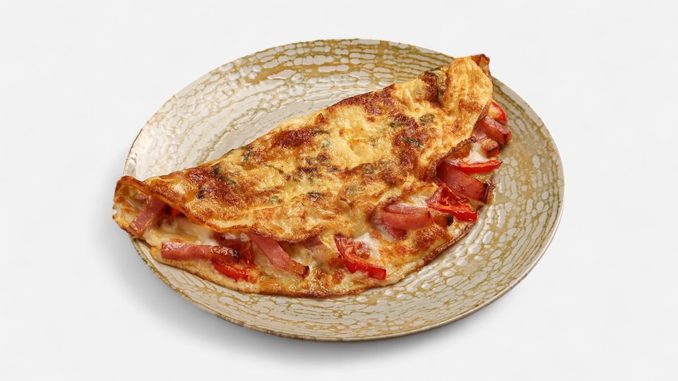 Ouă, roșii, ardei gras, cascaval, smântână de gătit, bacon, ceapă verde 280 g
