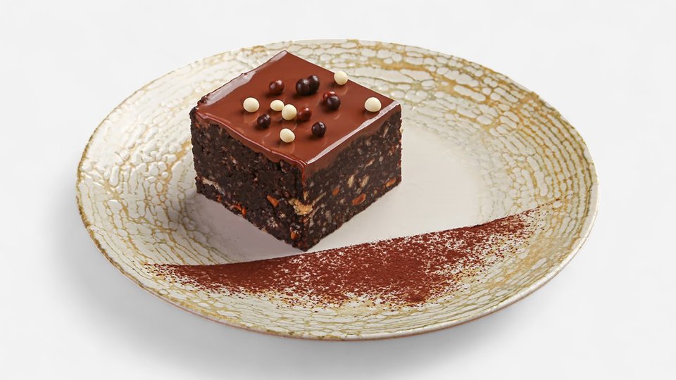 Ciocolată neagră, frișcă, unt 82%, ouă, zahăr, făină, miez de nucă, arahide, lapte, cacao, bicarbonat, lichior Amaretto. -150g