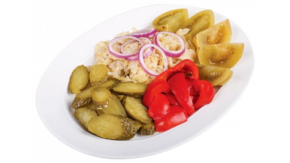 Varză murată, gogonele murate, castraveți murați, gogoșari marinați, ulei 270 g